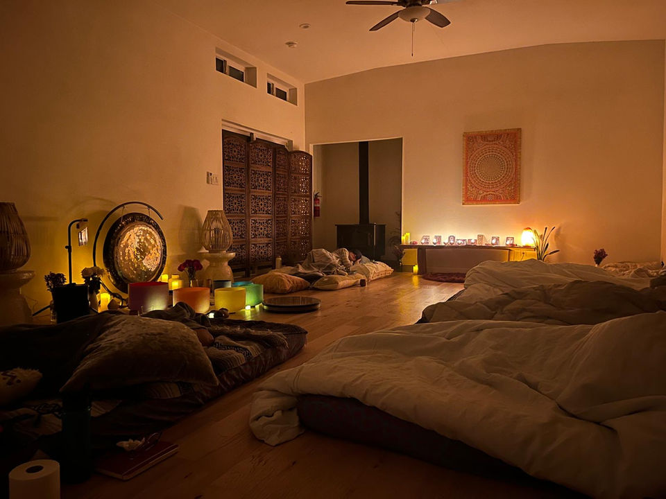 🌿 Accommodations: Rest and rejuvenate in tranquil Wonder Valley surrounded by beautiful serene landscapes. This sacred sanctuary includes shared bed & bathrooms, a yoga room & hot spring tubs.